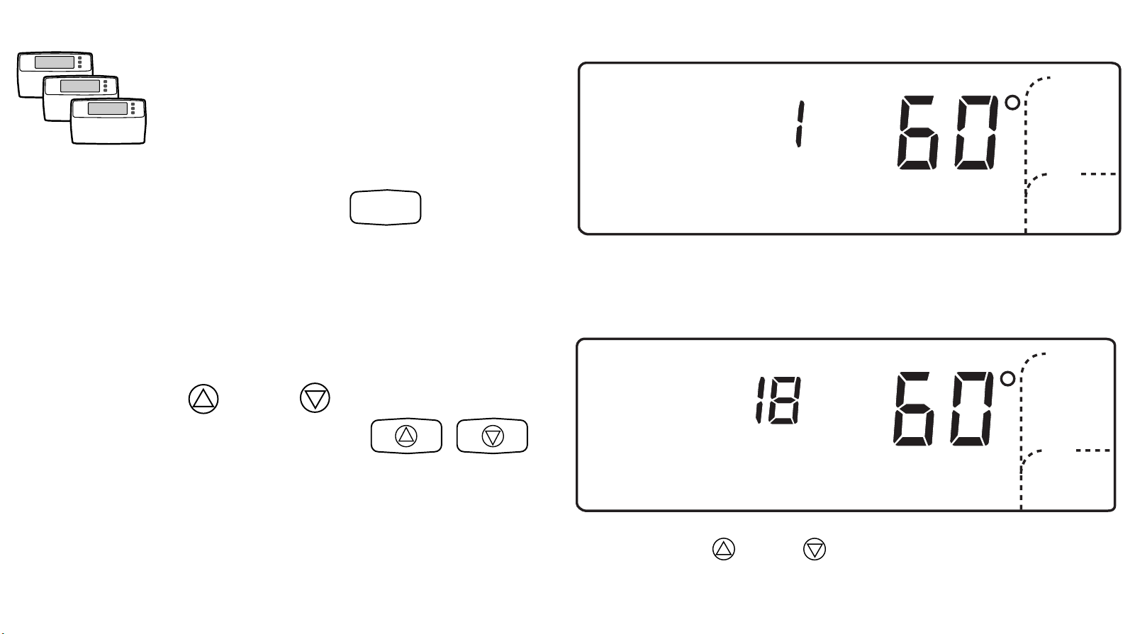 The keyboard is located behind the thermostat cover. Three frequently used keys, increase ▲ or decrease ▼