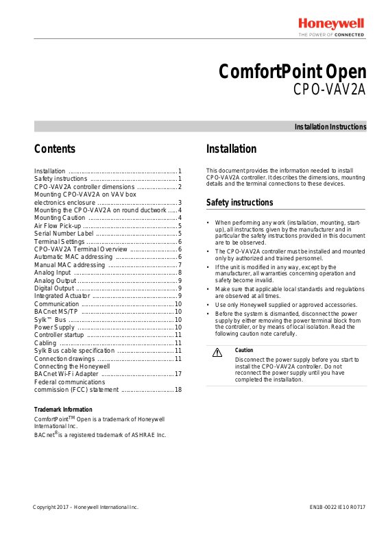 Copyright 2017 – Honeywell International Inc.EN1B-0022 IE10 R0717