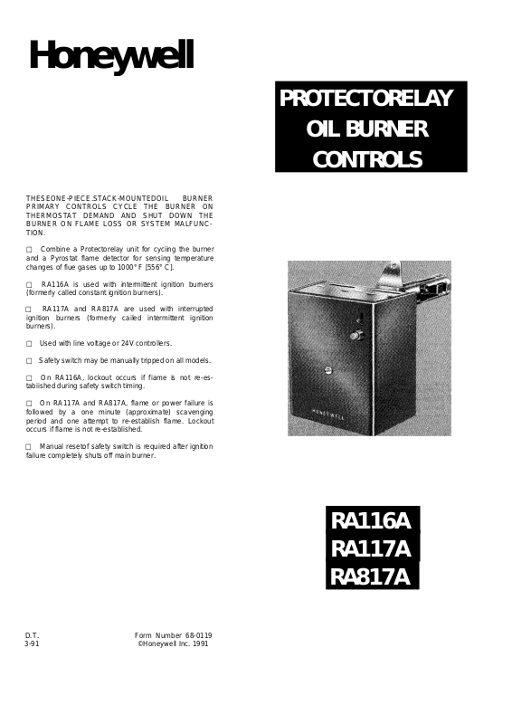 □ RA116A is used with intermittent ignition burners