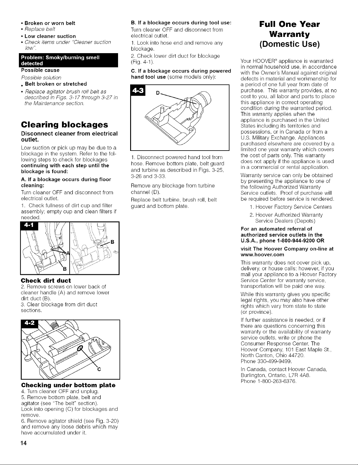 Factory Service Center or Authorized Hoover Warranty Service Dealer (Depot).