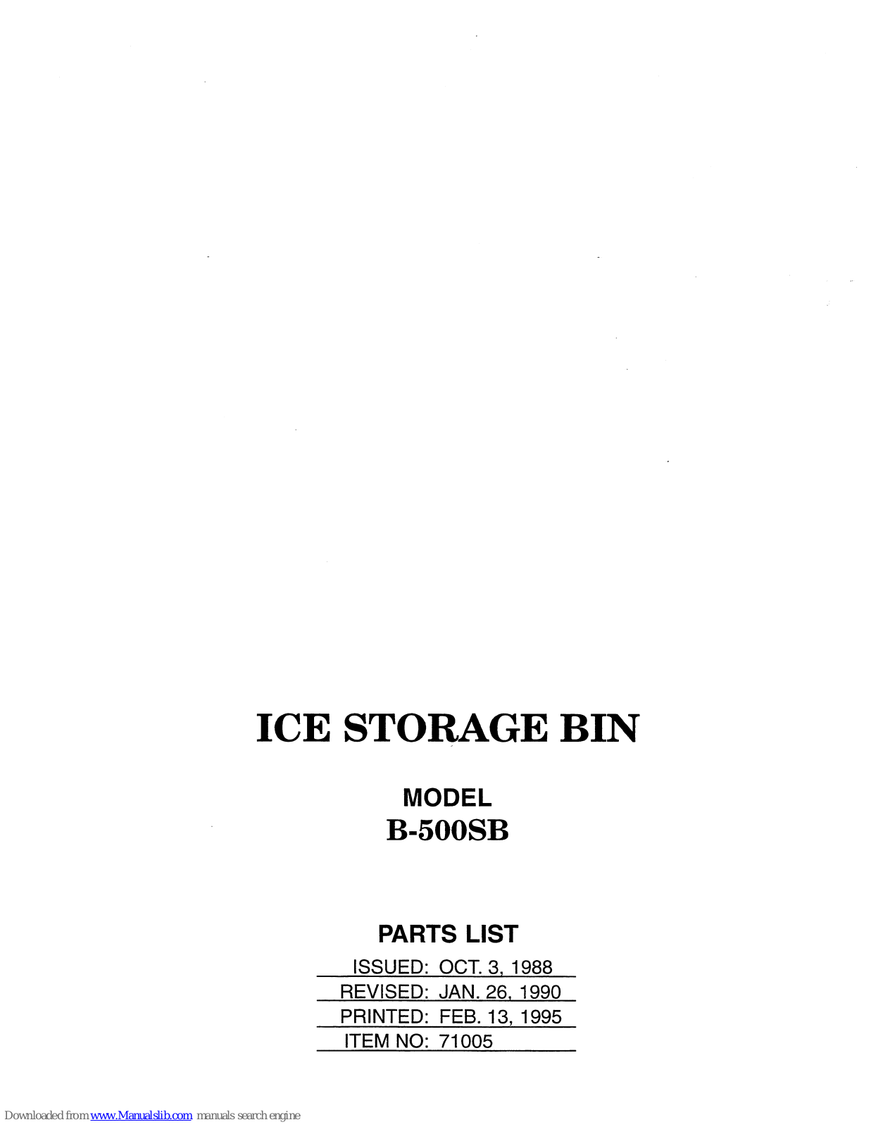 Hoshizaki B-500SB Parts List