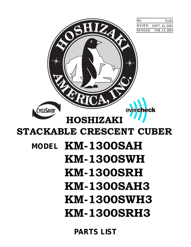KM-1300SAH, KM-1300SAH3 A. ICE CUBER ASSEMBLY L-0, M-0, M-1, M-2, N-0