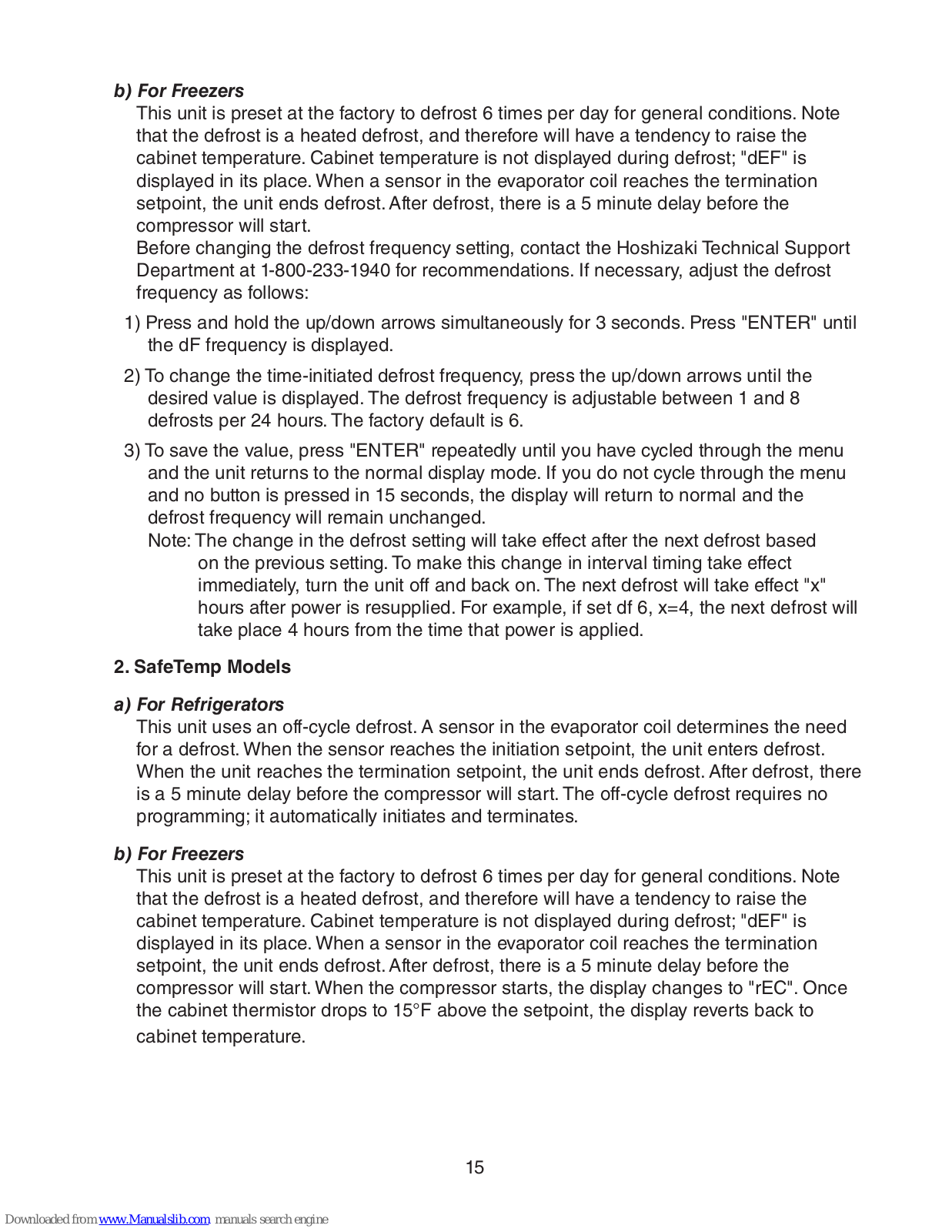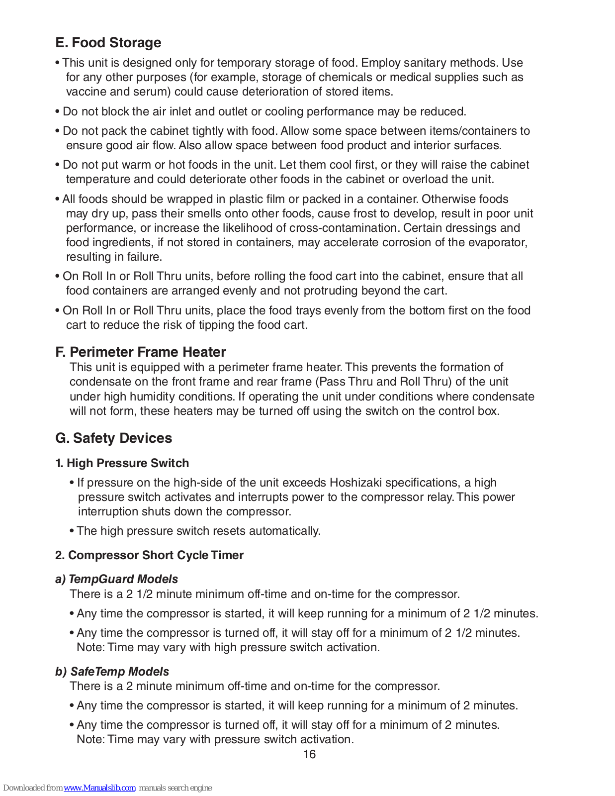 Hoshizaki TempGuard, SafeTemp Instruction Manual