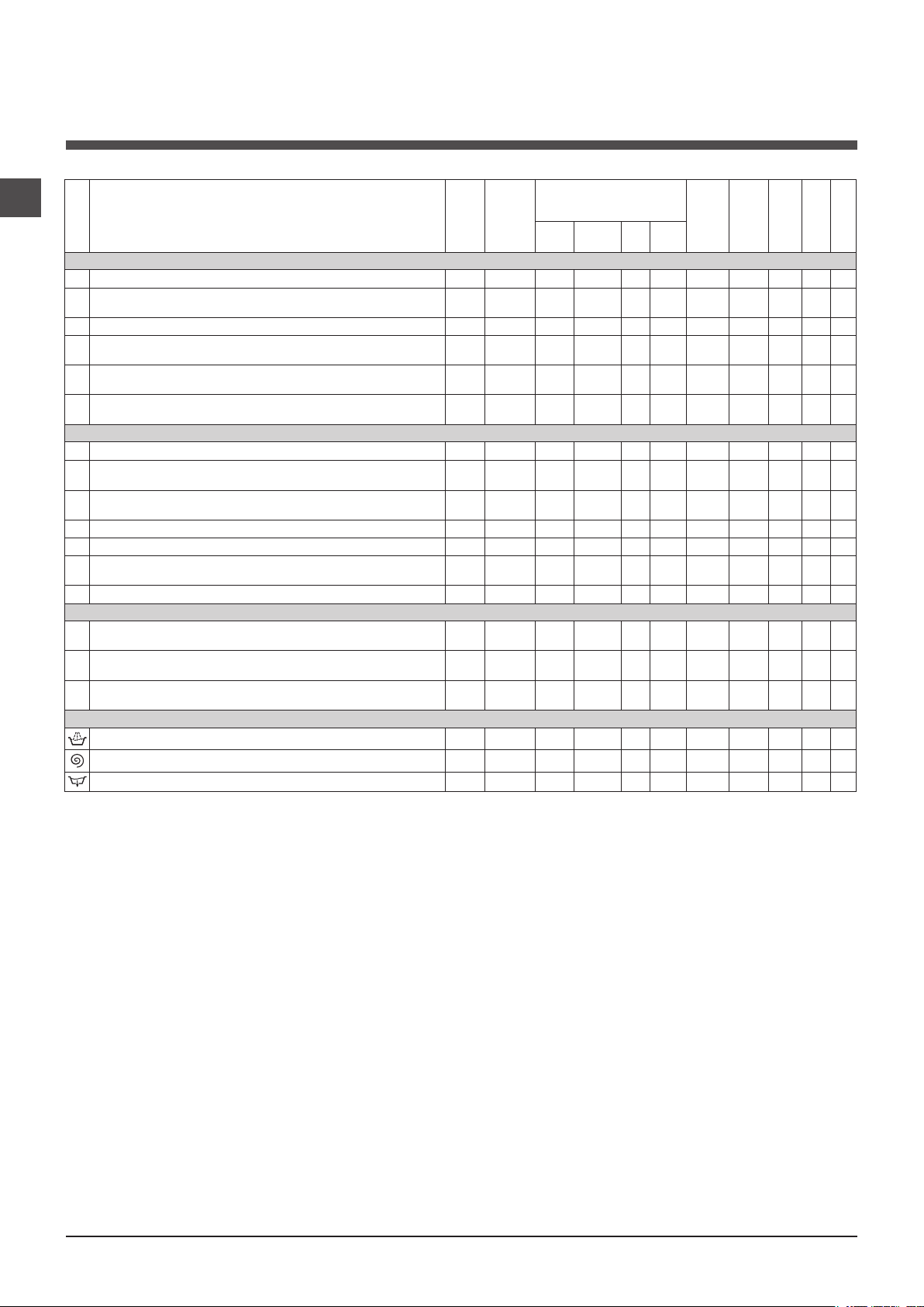 Table of wash cycles