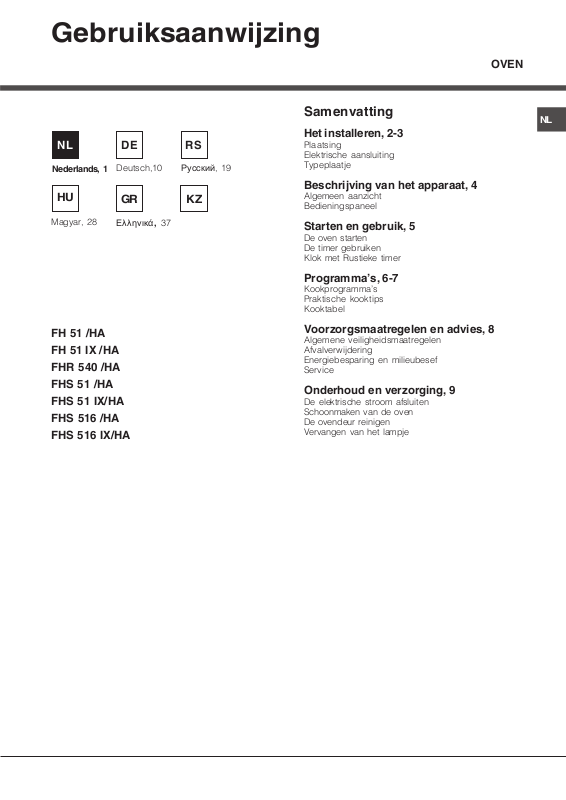 Hotpoint Ariston FHS 516 IX/HA, FH 51 IX/HA User Manual [nl]