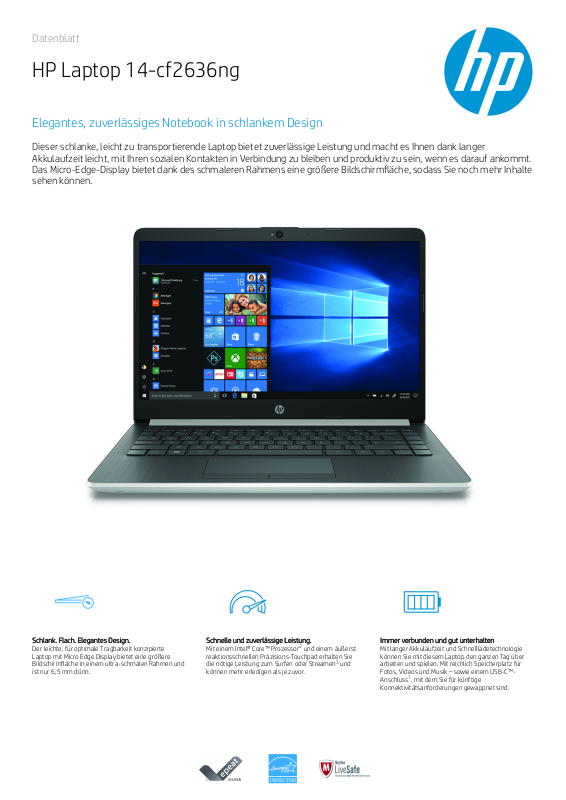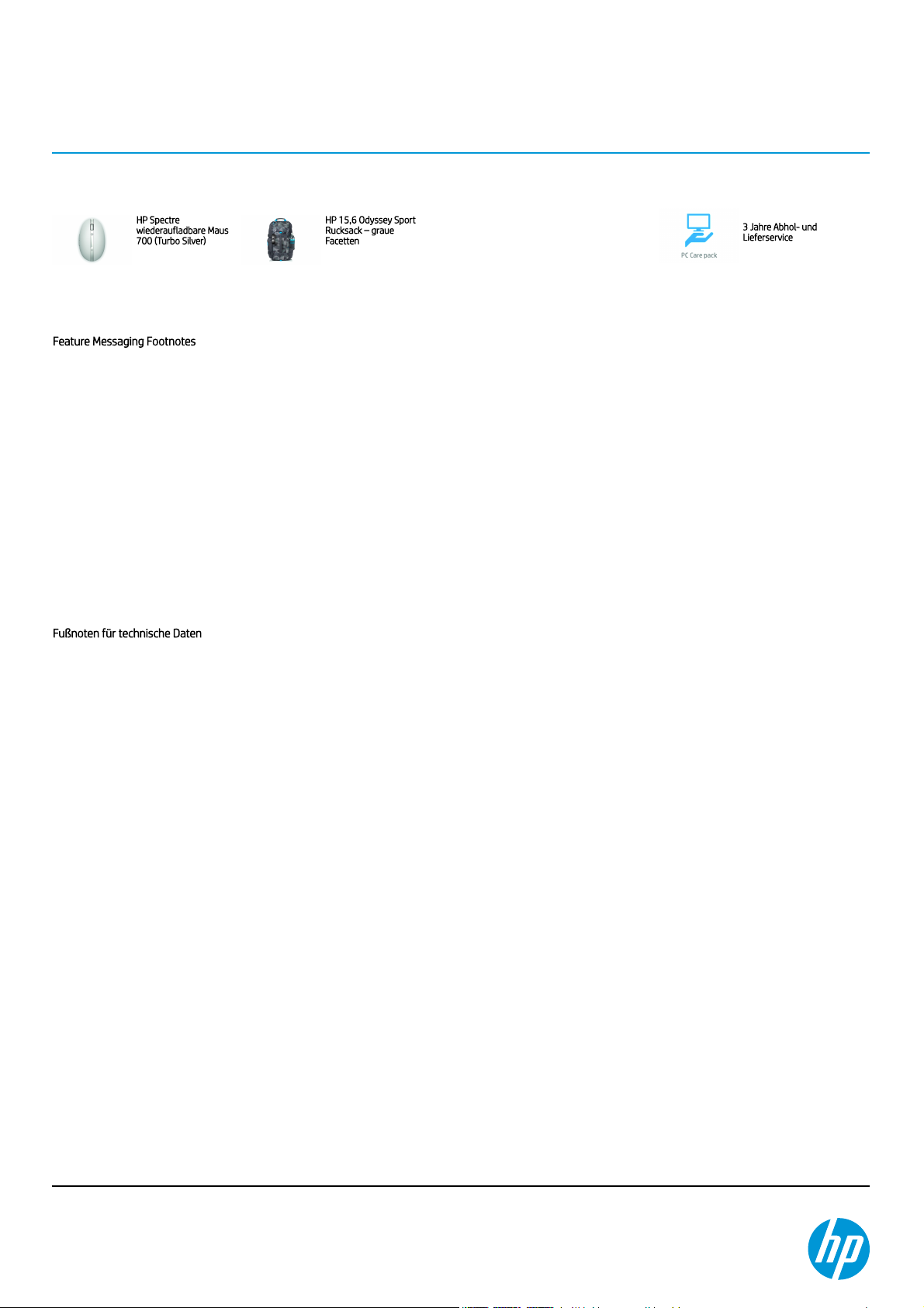 Systemtoleranz um +/- 10 % variieren. Bei bestimmten HP Produkten verfügbar. Eine vollständige Liste der Produktmerkmale finden Sie unter http://store.hp.com.
