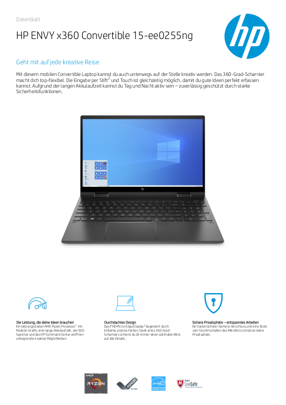 © Copyright 2020 HP Development Company, L.P. Änderungen vorbehalten. Neben der gesetzlichen Gewährleistung gilt für HP Produkte und Dienstleistungen ausschließlich die Herstellergarantie, die in den