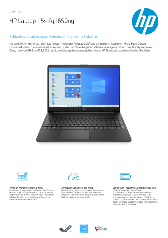 Akkulaufzeit wurde von HP mit folgenden Einstellungen getestet: kontinuierliche FHD-Videowiedergabe, 1080p (1920 x 1080) Auflösung, 150 Nit Helligkeit, 17 % Systemlautstärke, Audio-Player-Stufe 100 %, Wiedergabe im