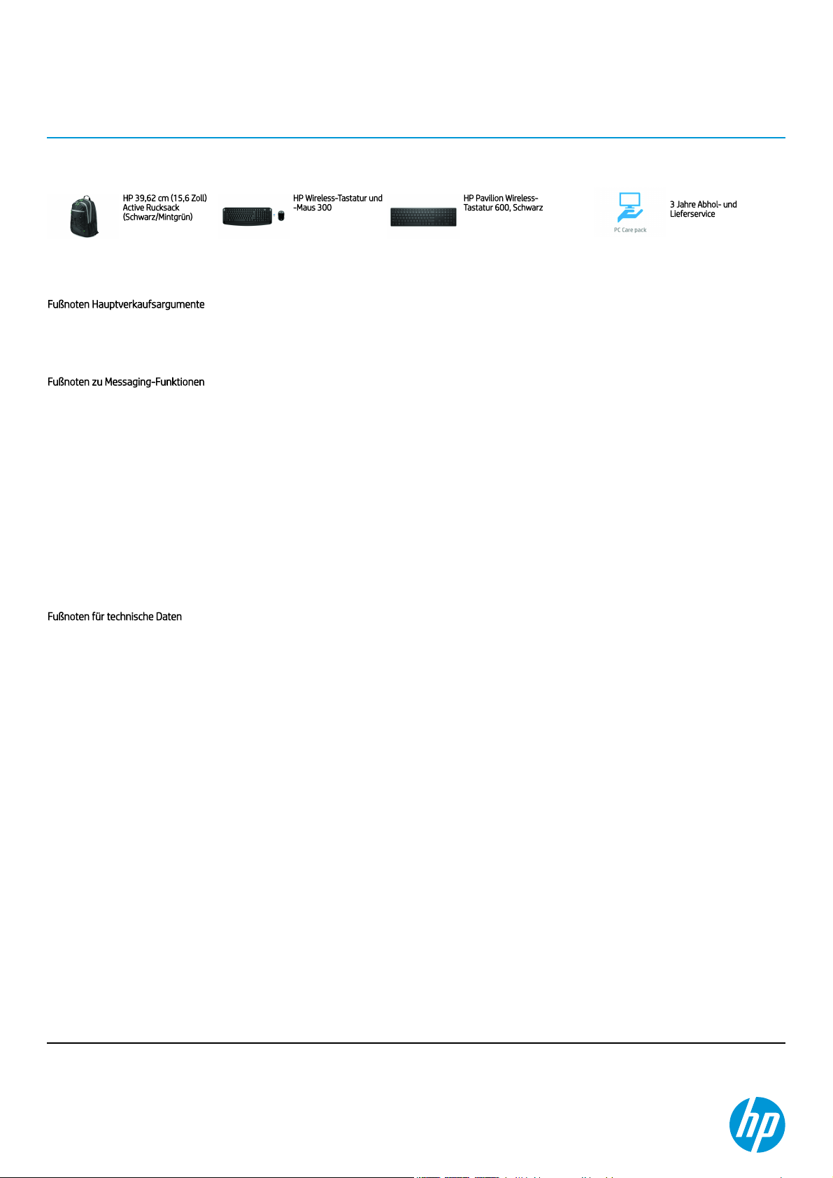 Systemtoleranz um +/- 10 % variieren. Bei bestimmten HP Produkten verfügbar. Eine vollständige Liste der Produktmerkmale finden Sie unter http://store.hp.com.