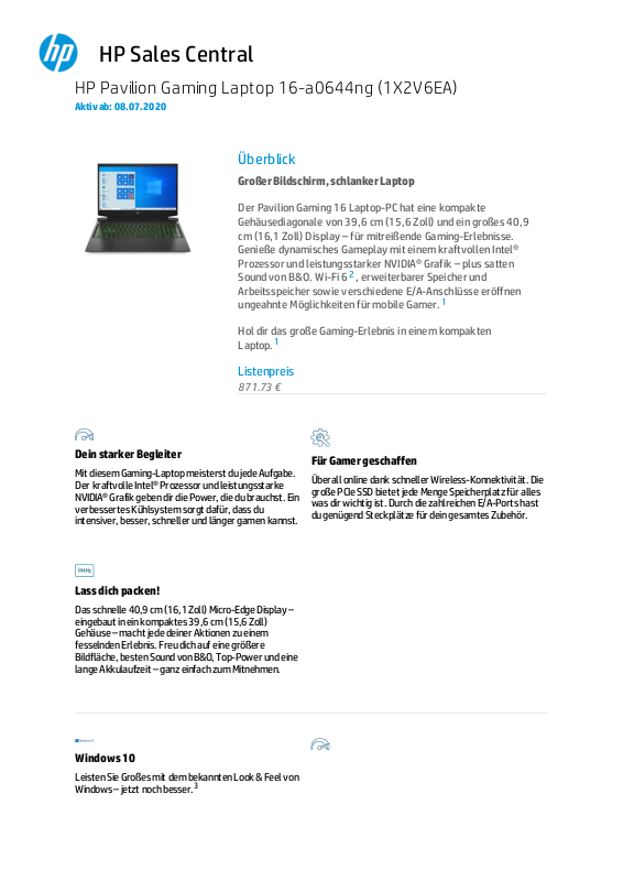 [10] Akkulaufzeit wurde von HP mit folgenden Einstellungen getestet: kontinuierliche FHD-Videowiedergabe,