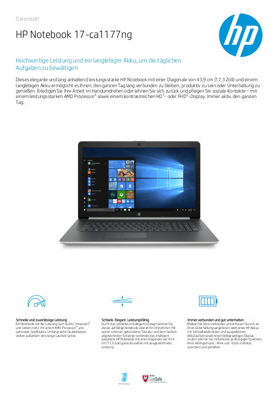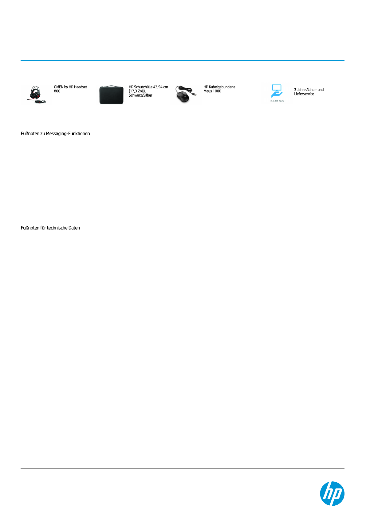 Systemtoleranz um +/- 10 % variieren. Bei bestimmten HP Produkten verfügbar. Eine vollständige Liste der Produktmerkmale finden Sie unter http://store.hp.com.