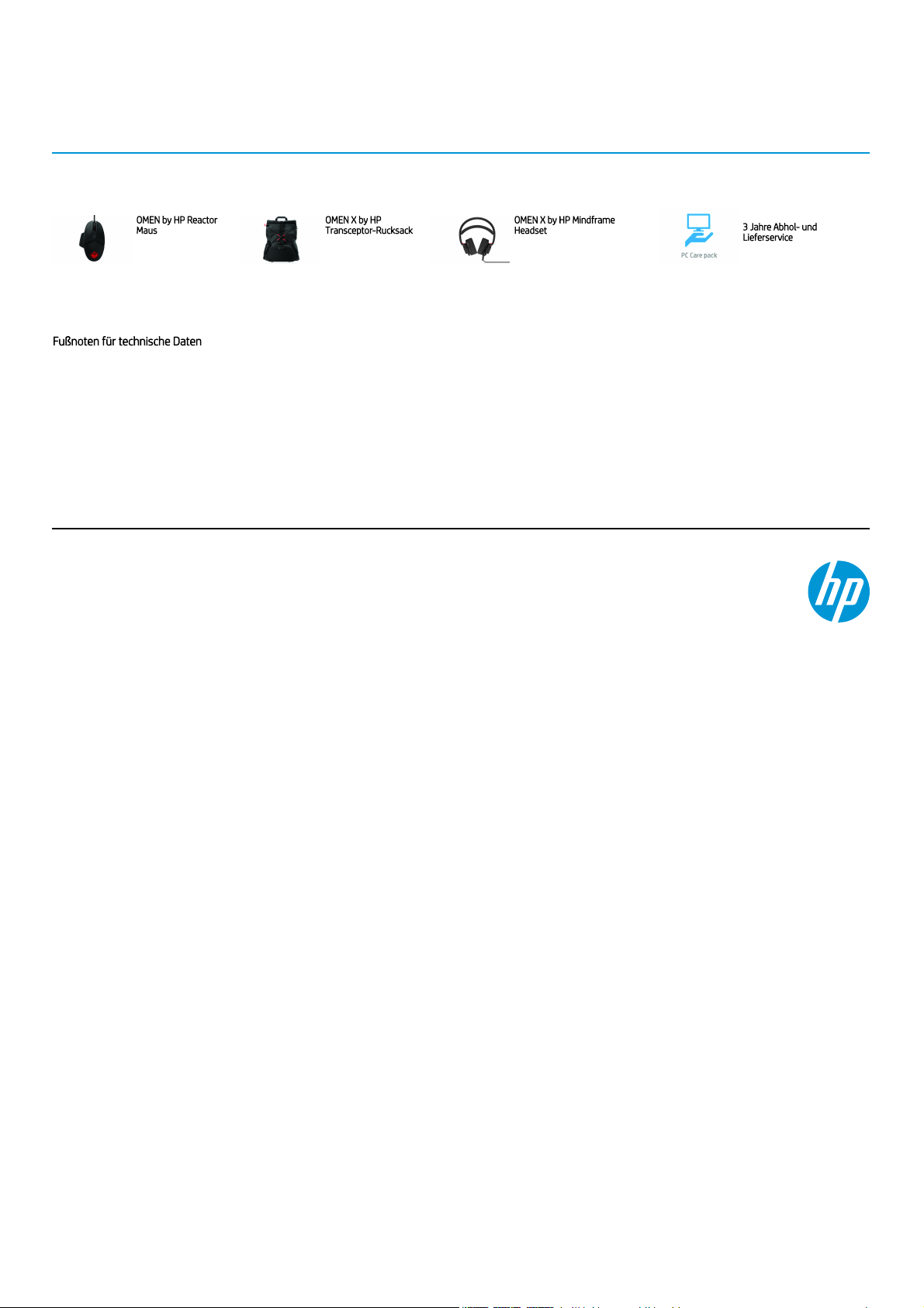 Systemtoleranz um +/- 10 % variieren. Bei bestimmten HP Produkten verfügbar. Eine vollständige Liste der Produktmerkmale findest du unter http://store.hp.com.