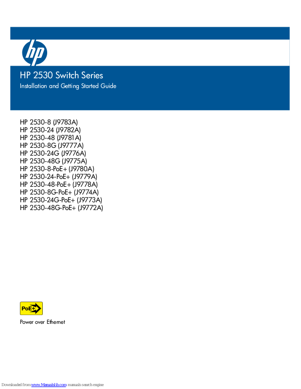 Throughout this manual, these switches will be referred to as the 2530-8, 253024, 2530-48, 2530-8G, 2530-24G, 2530-48G, 2530-8-PoE+, 2530-24-PoE+, 253048-PoE+, 2530-8G-PoE+, 2530-24G-PoE+, and 2530-48G-PoE+.