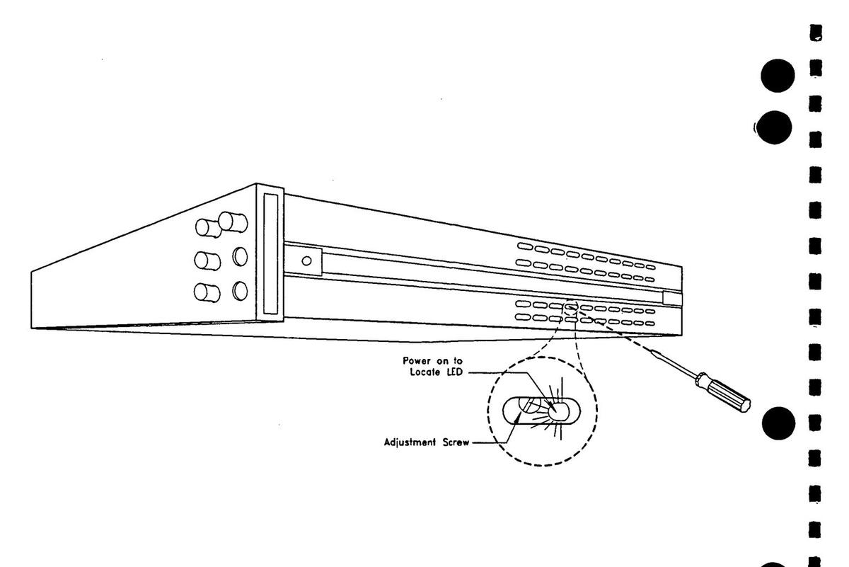 4. With a small screwdriver, adjust the potentiometer through the ventilation slot shown in Figure 4-1. An LED is positioned behind the potentiometer to make it easy to locate through the ventilation slot. The reading on the DMM should be less than ± 100 µV.