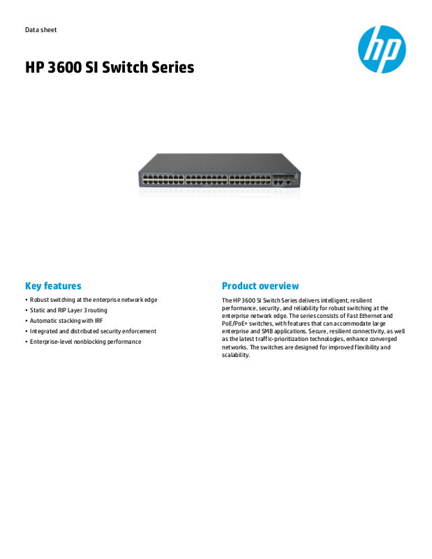 The HP 3600 SI Switch Series delivers intelligent, resilient