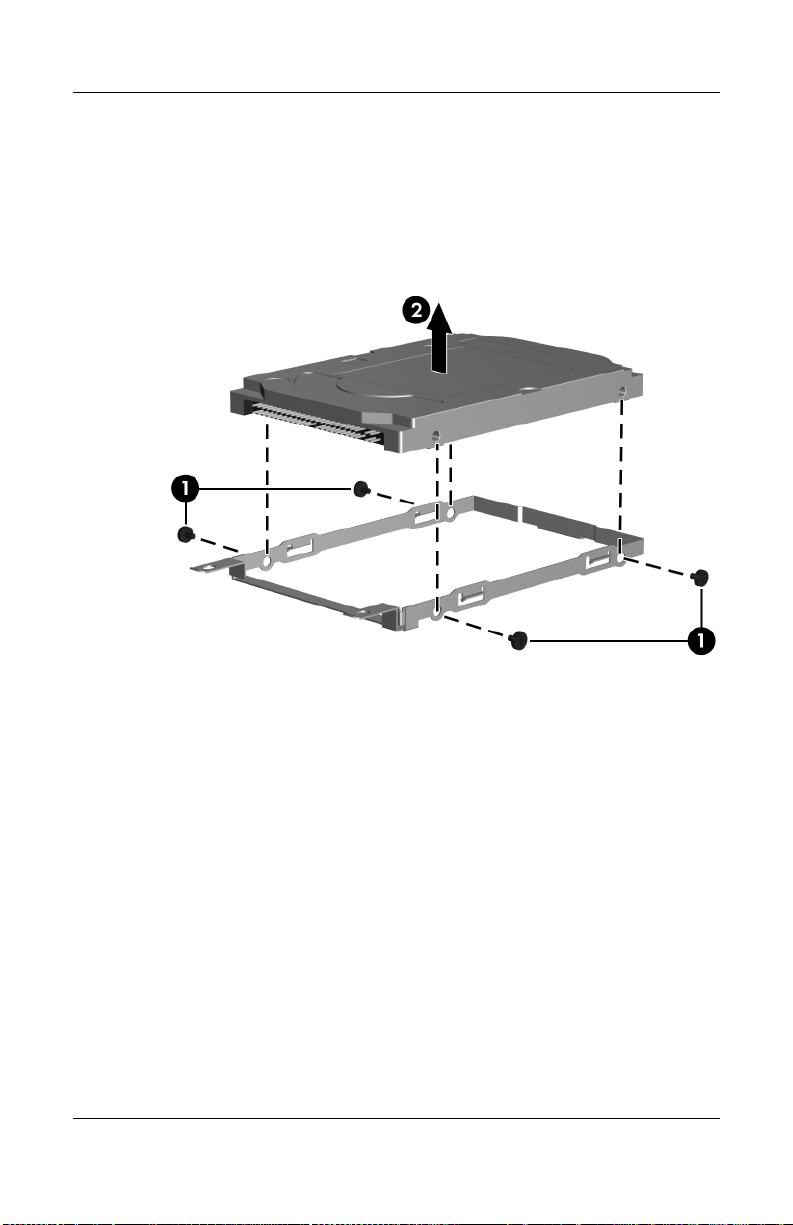 8. Lift the hard drive straight up 2 to remove it from the hard