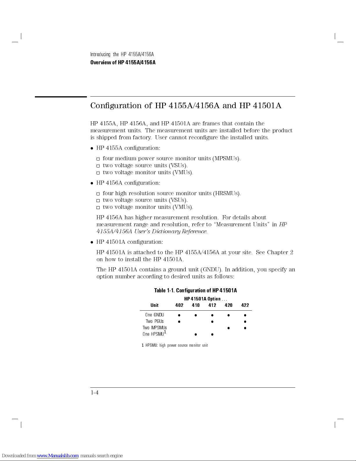 4155A/4156A and HP 41501A to warm-up for a minimum of 40 minutes