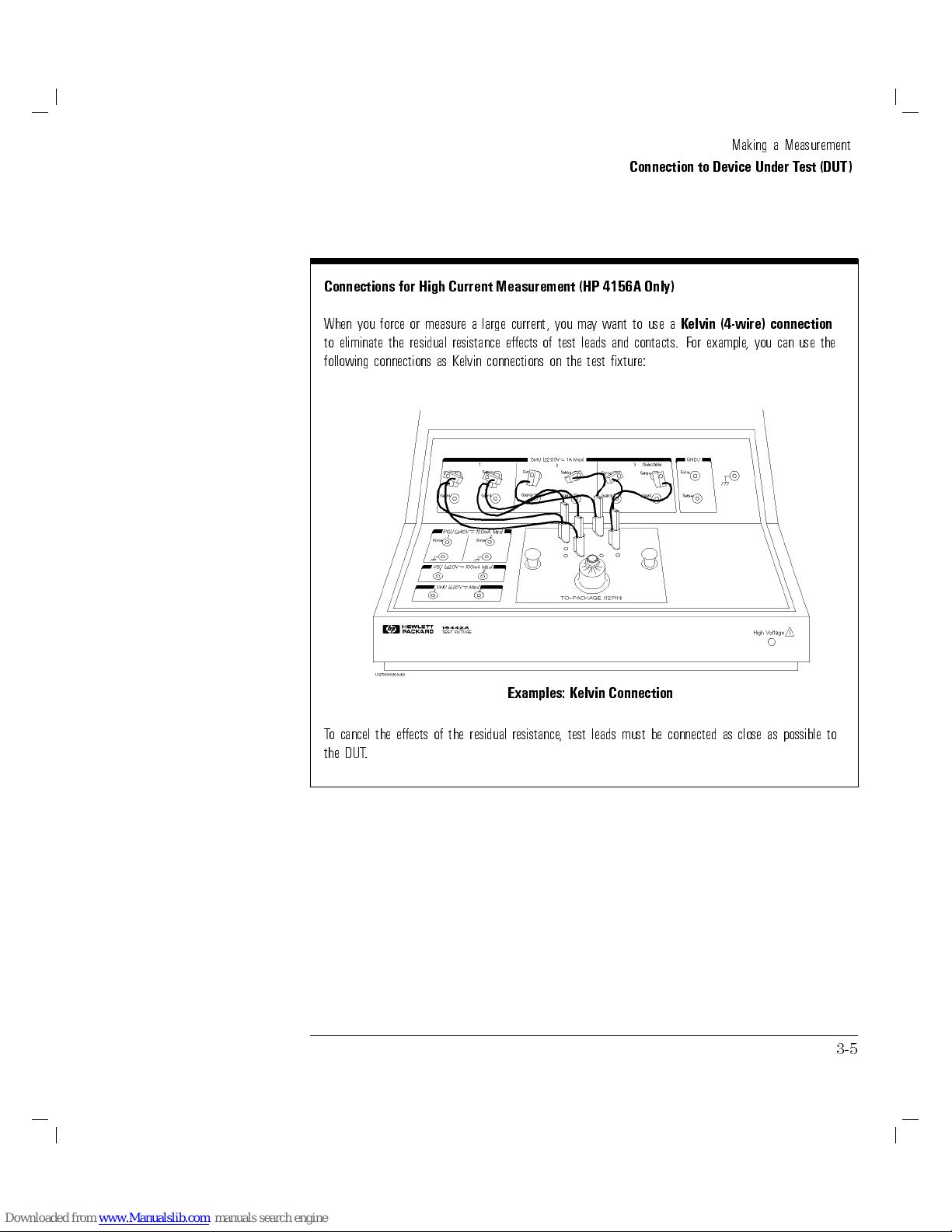 Connections to Measure Low Resistance (F or HP 4156A Only)" for K elvin