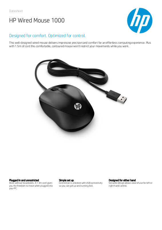 HP Wired Mouse 1000; Product notice; Warranty card; Quick start guide