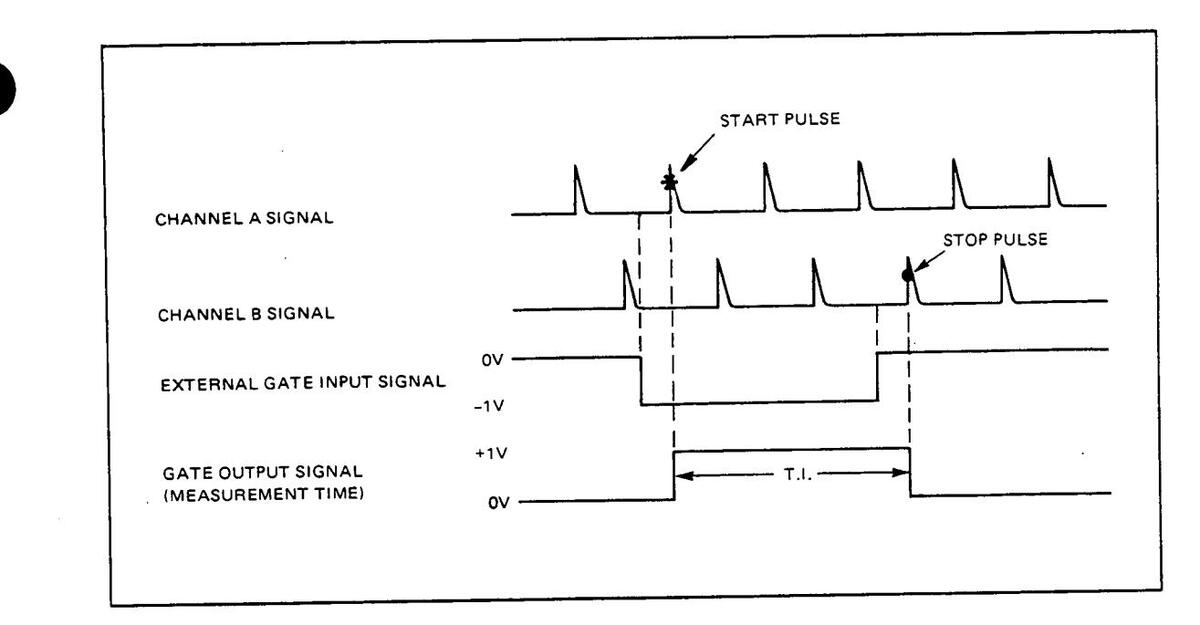 for a frequency measurement or E/2XT for a period measurement. The 2EXT/E for a period measurement. The process of division is accomplished by performing a series of subtractions . Under certain conditions this circuit also performs addition (e.g., when the Numerator Register's content is added to itself to double the time count, to recover an overdraft of an unsuccessful subtraction, and during START OR STOP A+B).