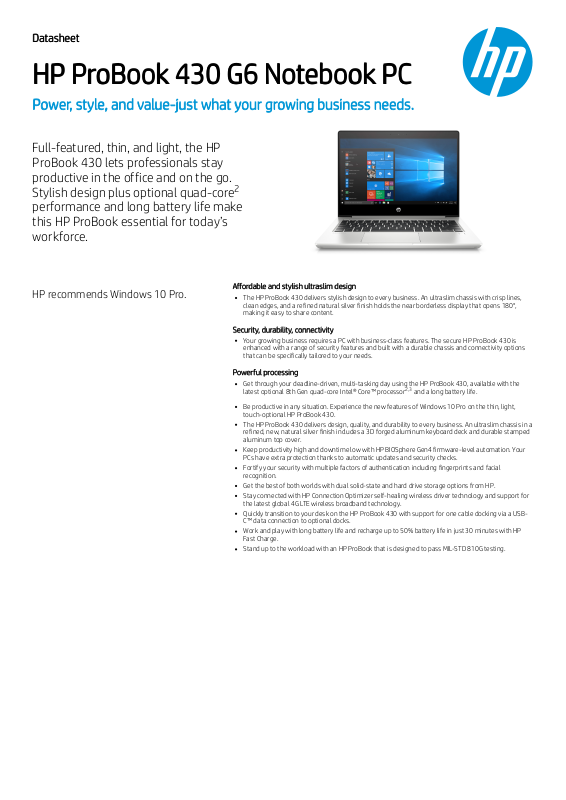 Data sheet | HP ProBook 430 G6 Notebook PC