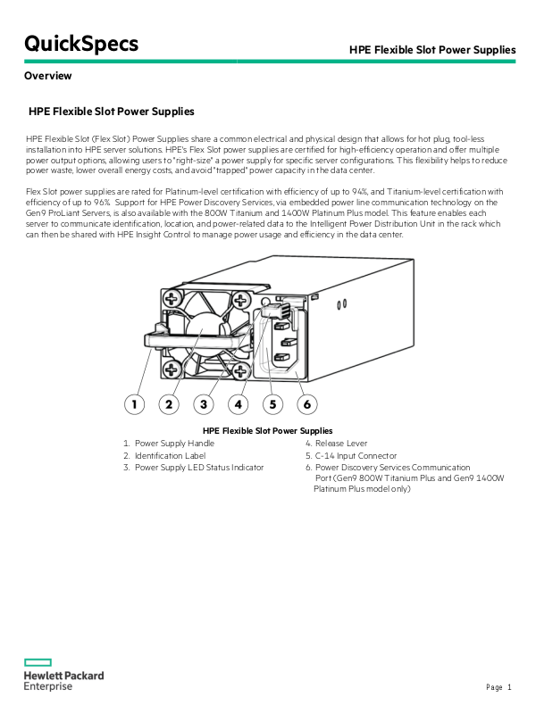 HPE server solutions. HPE's Flex Slot power supplies are certified for high-efficiency operation and offer multiple