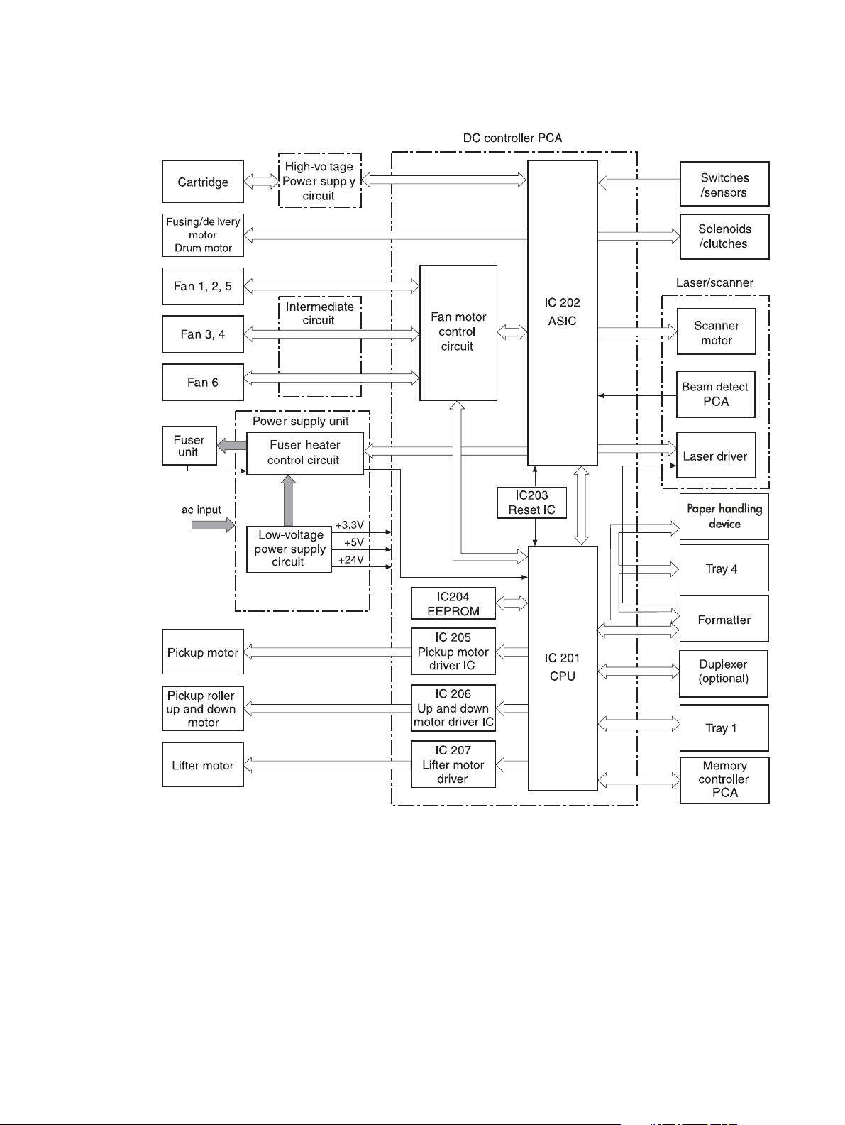 Based on signals it receives from the DC controller and the formatter, the laser/scanner PCA causes