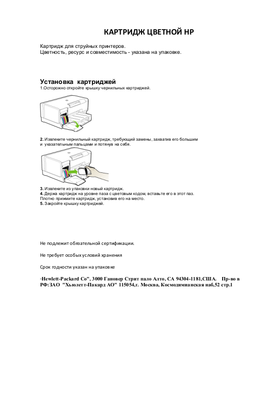 "Hewlett-Packard Co", 3000 Гановер Стрит пало Алто, СА 94304-1181,США. Пр-во в