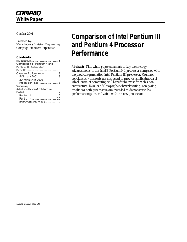 Comparison of Intel Pentium III and Pentium 4 Processor Performance White Paper 3