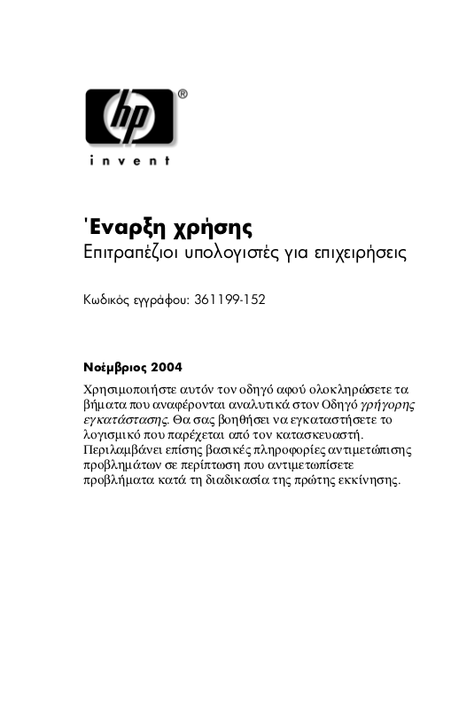 Hp COMPAQ DX6120 MICROTOWER, COMPAQ DC5100 SMALL, DX5150 MICROTOWER, DX5150 SMALL, COMPAQ DC5100 MICROTOWER, COMPAQ DC7100 SMALL, COMPAQ DC7100 CONVERTIBLE MINITOWER, COMPAQ DX6100 MICROTOWER, COMPAQ DX6100 SLIM TOWER, COMPAQ DX6120 SLIM TOWER User Manual [el]