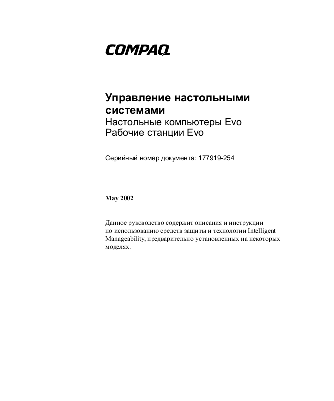 компьютером (Compaq Intelligent Manageability) обеспечивает