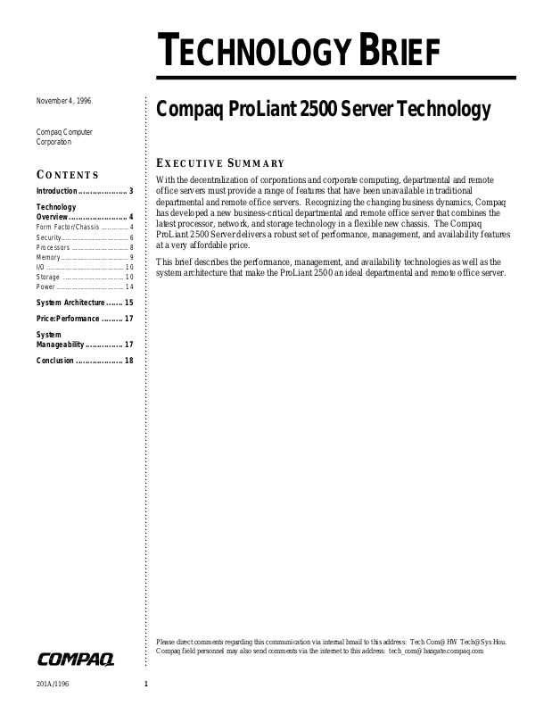 This brief explains the technology integrated with the ProLiant 2500 that makes it an ideal