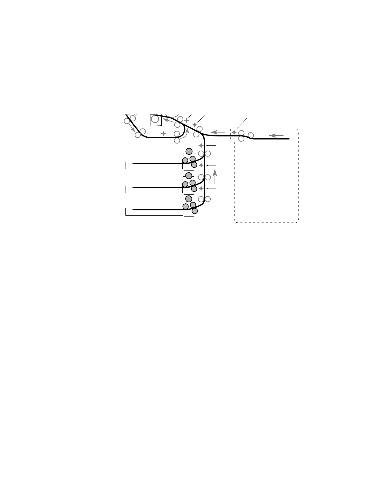 is exposed to the drum. During multiple page duplex jobs, as the paper is traveling