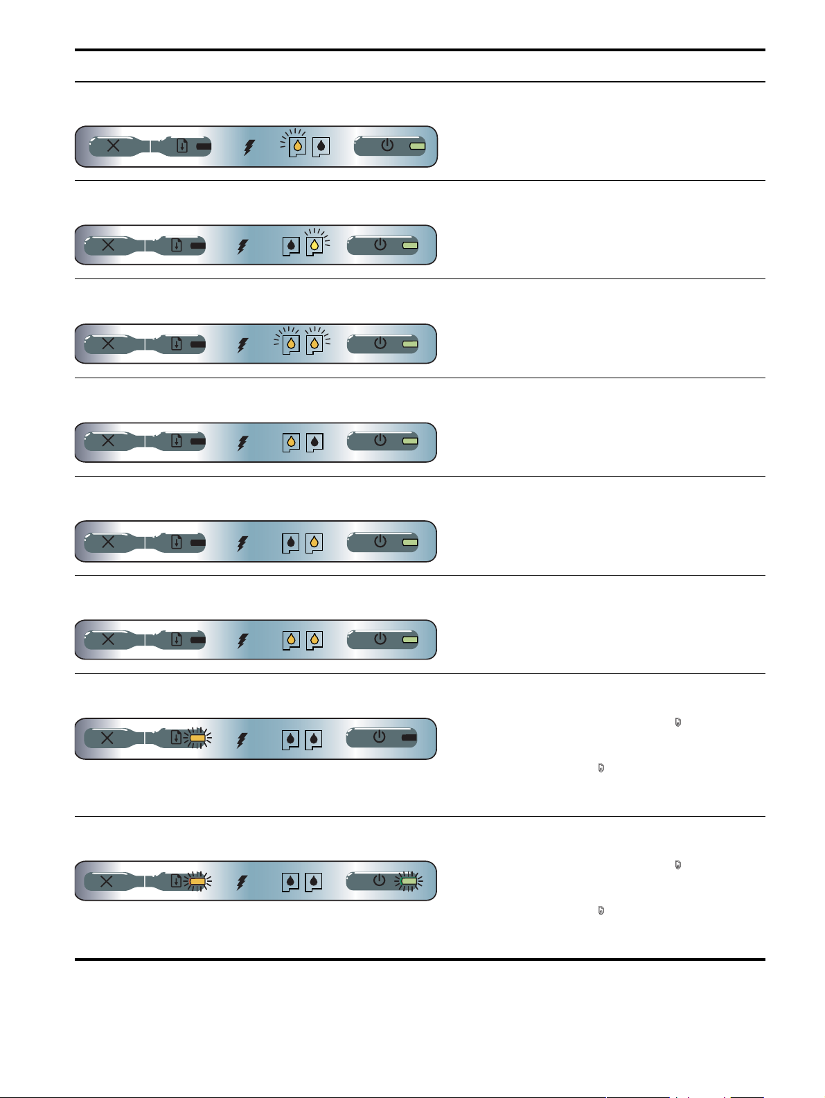 장에서는 프린터 상태 표시등의 목록과 함께 각 표시등에 관한 설명 및 문제 해결 방법을 제공합니다 .