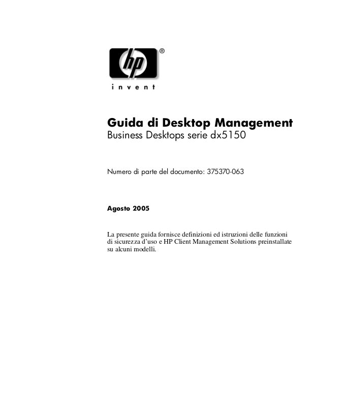 di sicurezza d’uso e HP Client Management Solutions preinstallate
