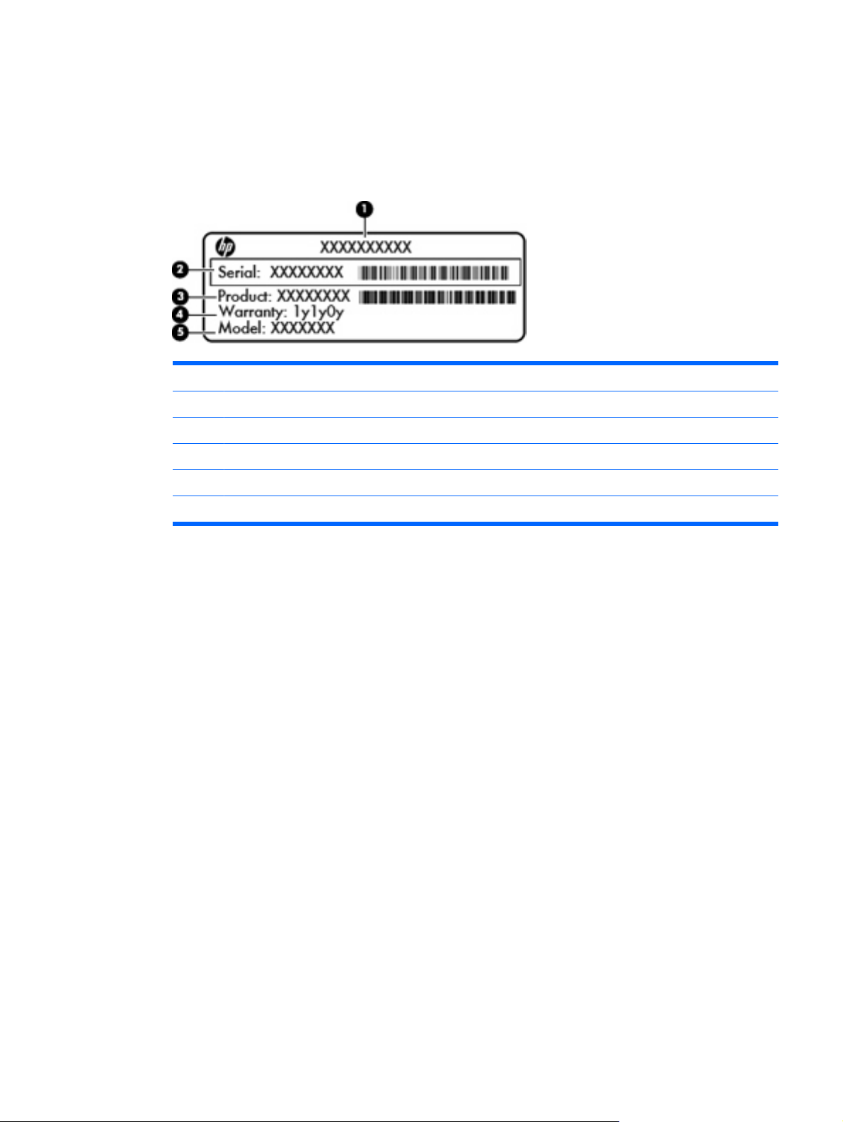 Regulatory label—Provides regulatory information about the computer. The regulatory label is
