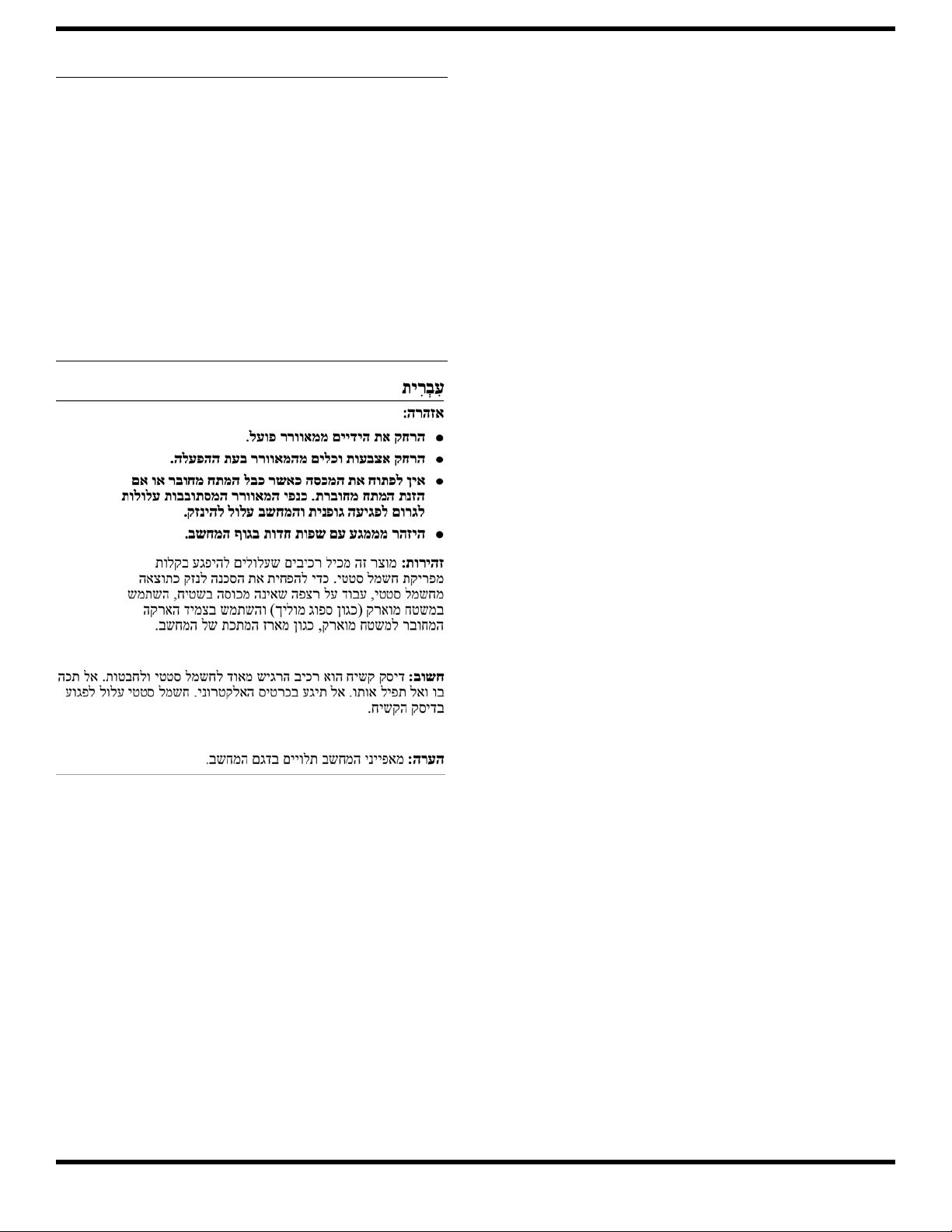 Evitaţi atingerea colţurilor ascuţite din interiorul calculatorului.