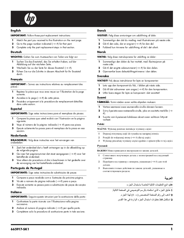 VIGTIGT: Følg disse anvisninger om udskiftning af dele: