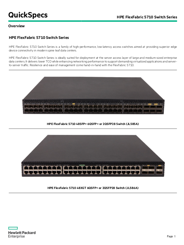 HPE FlexFabric 5710 Switch Series is a family of high