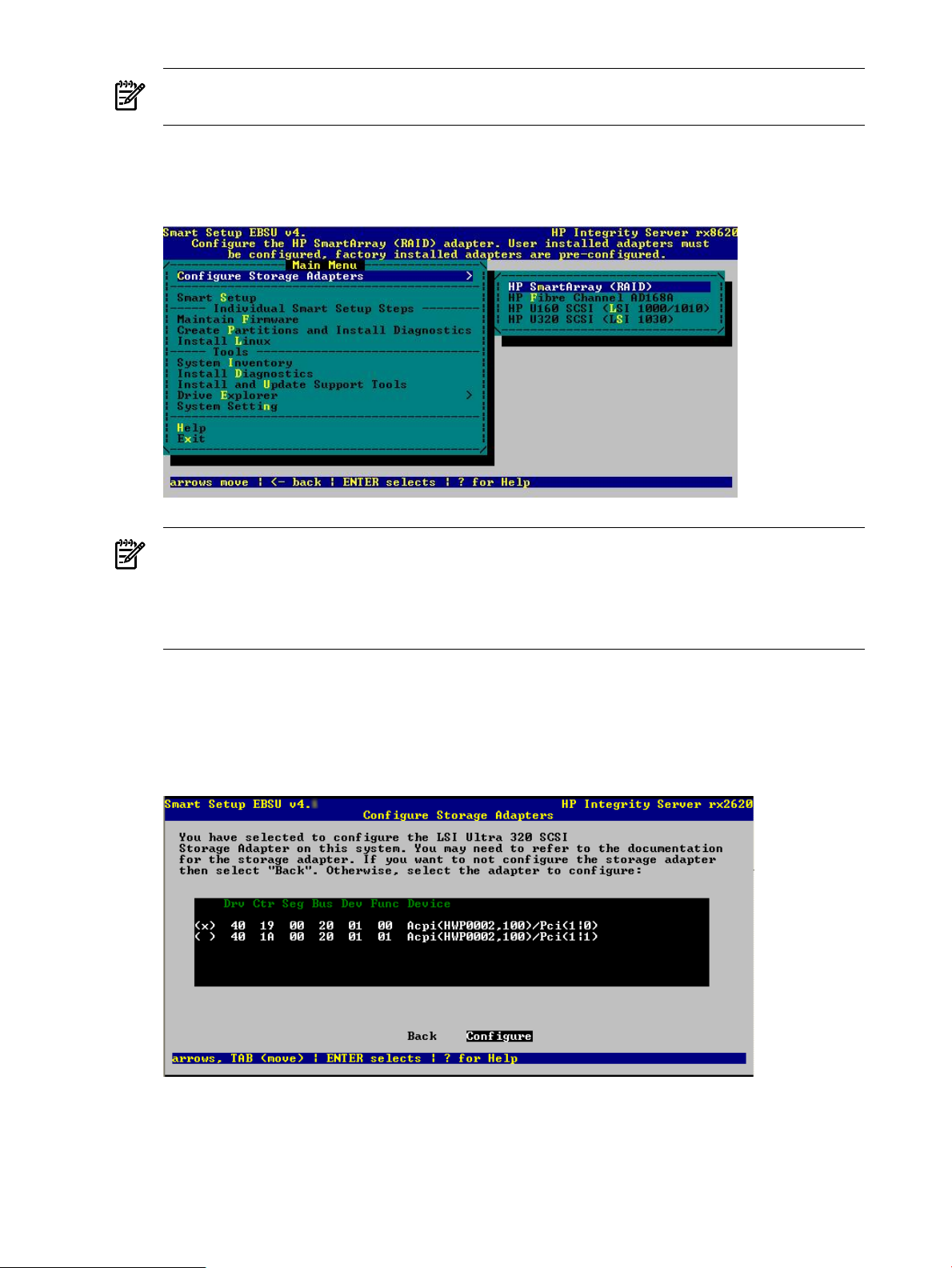 the adapters, thus installing the EFI driver. You can then proceed to use the Configure Storage