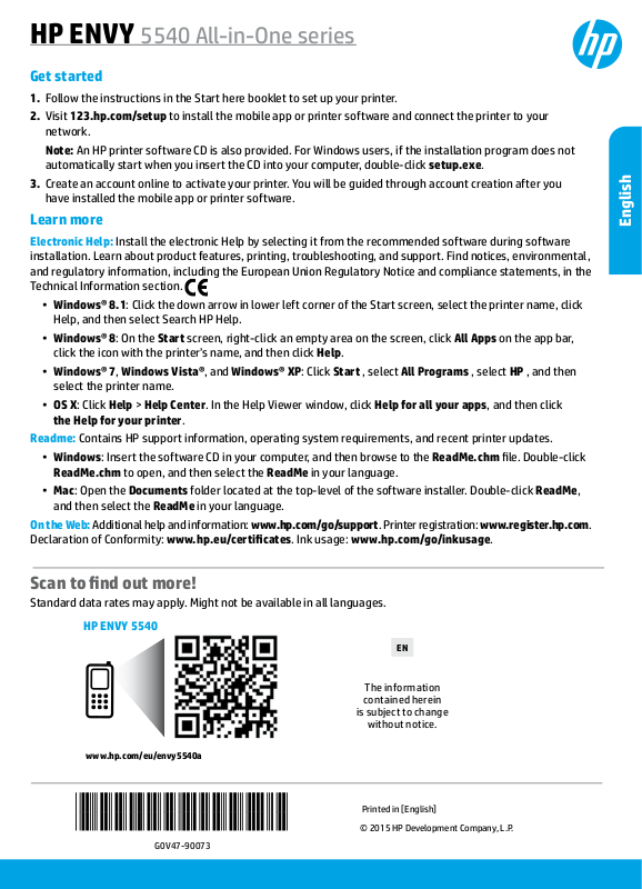 Declaration of Conformity: www.hp.eu/certicates. Ink usage: www.hp.com/go/inkusage.