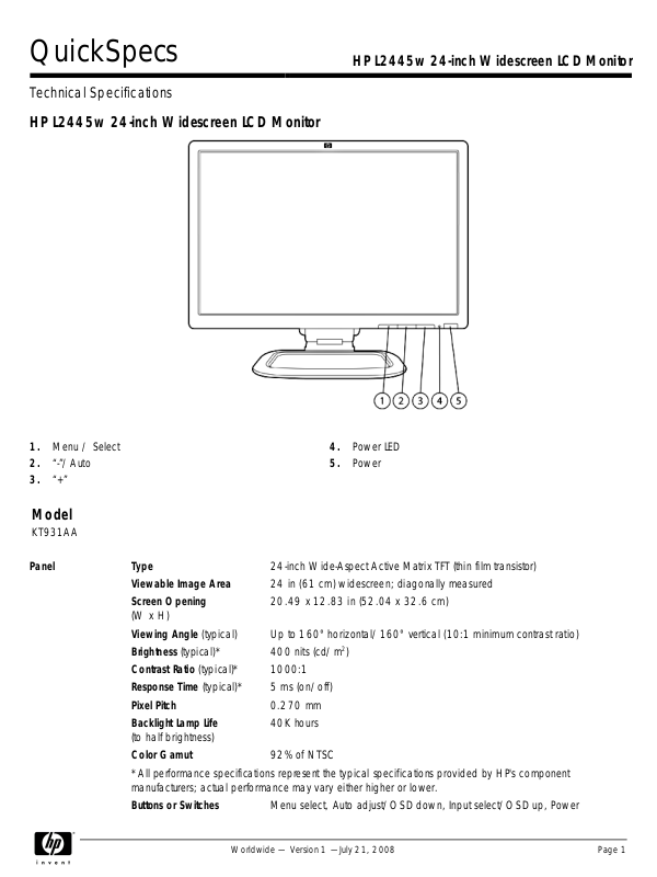 Worldwide — Version 1 —July 21, 2008 Page 5