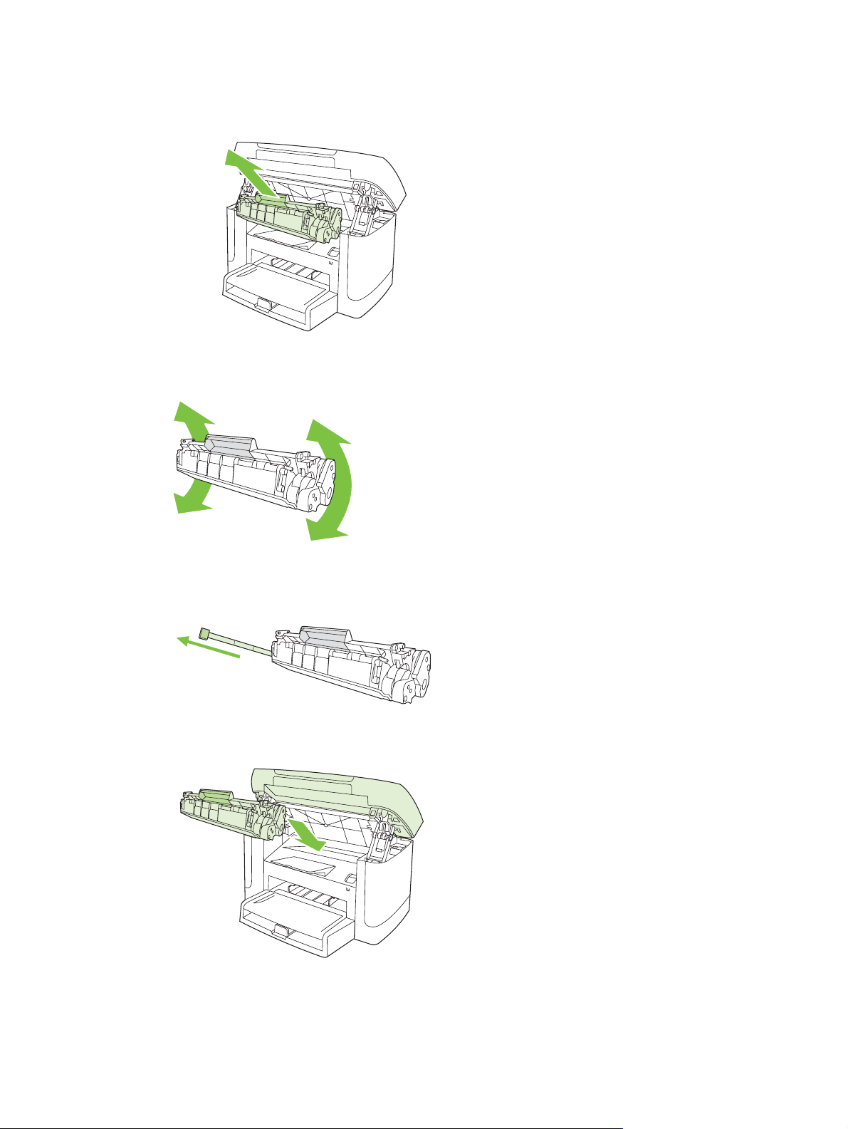 Este posibil ca tonerul dispersat să rămână în interiorul echipamentului după un blocaj. Această