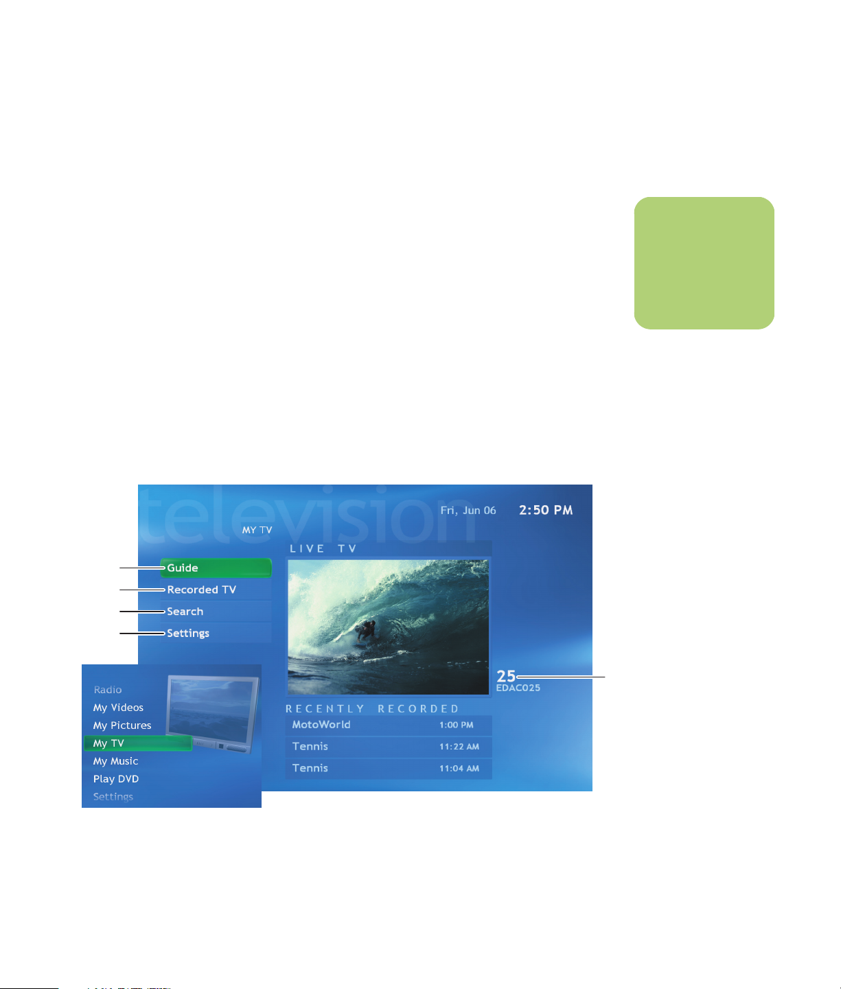 window, press Guide again to view a categories menu. To filter your guide to