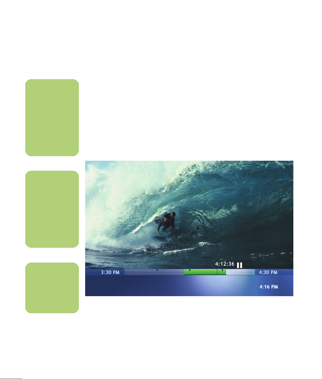 pause buffer or recorded program. Allows you to go back 12 hours in the
