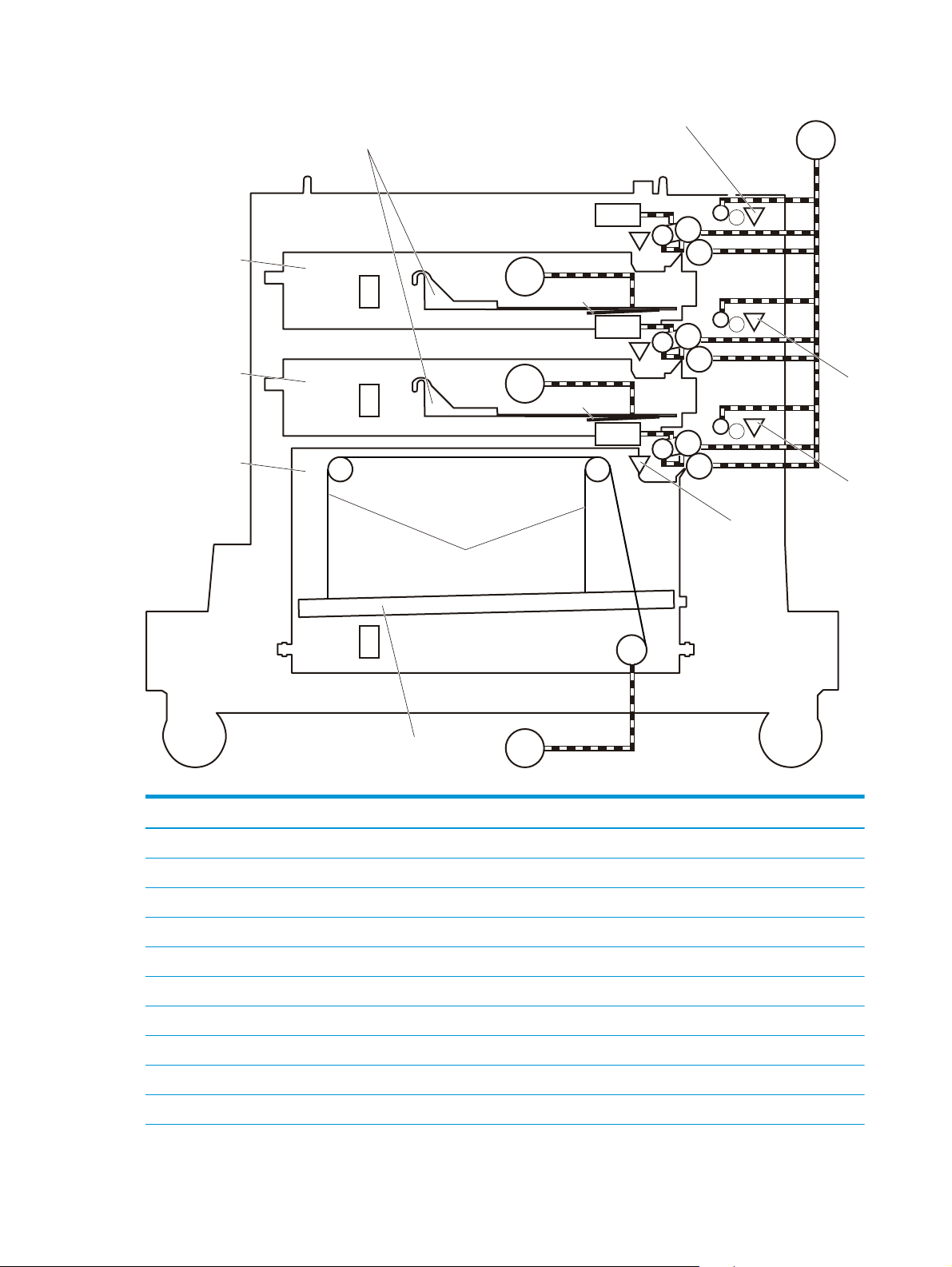 Table 1-26 Pickup feed components (1x500-sheet paper feeder) ................................................................................... 69