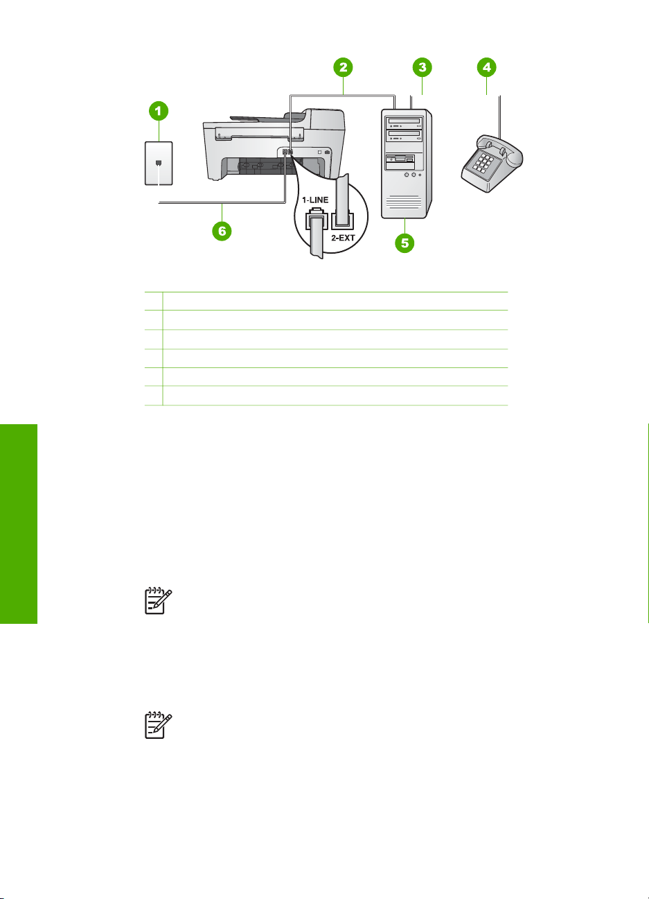 孔。电话线一端必须连接到 HP All-in-One 后面的“1-LINE ”端口上,