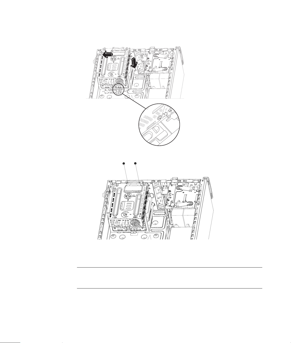 3 Sätt fast de två skruvarna som fäster hårddiskenheten i chassit.