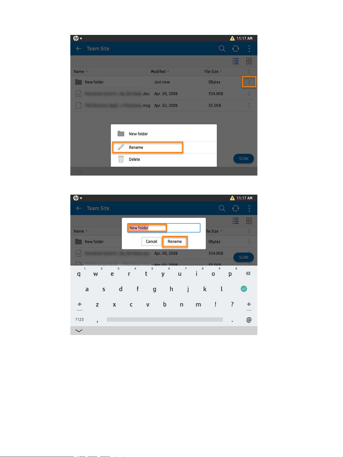 1.From the main menu in HP for SharePoint Online, touch the App menu (3 dots in the title bar).