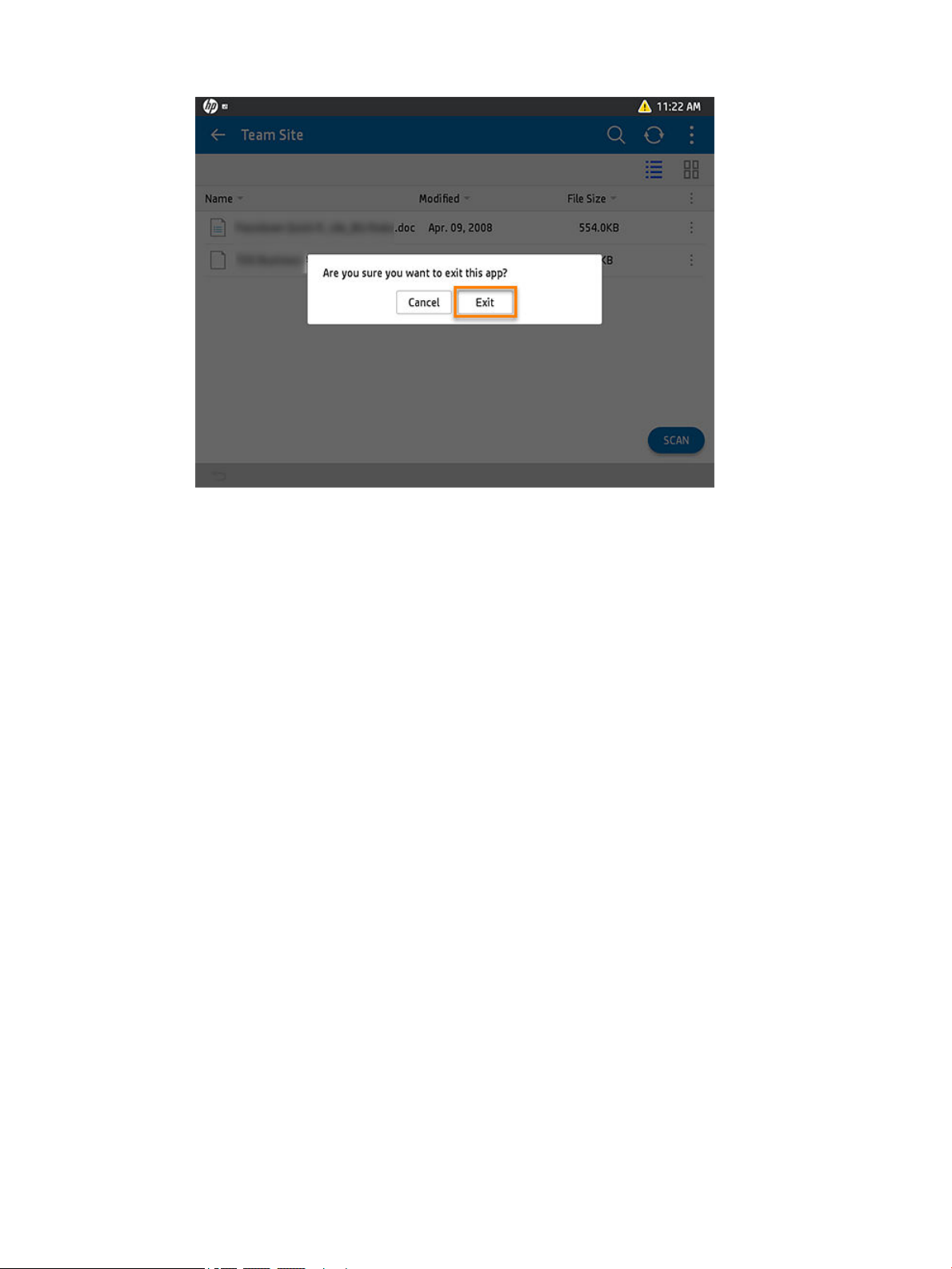 To sign out of the HP for SharePoint Online App and the SharePoint Online account, follow these steps: